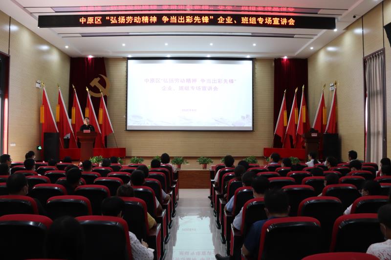 為充分發揮中原新區聯合黨委基層黨校在黨的理論教育上的主陣地作用和在黨性教育上的大熔爐作用,在黨校中弘揚習近平總書記給圓方集團職工的重要回信精神,真正使聯合黨委基層黨校成為黨員干部思想政治教育的紅色殿堂,6月5日和9日,中原區“弘揚勞動精神 爭當出彩先鋒”企業、班組專場及非公企業專場宣講會在中原新區聯合黨委基層黨校舉行,中原區委組織部組織科科長蔚光勛、西流湖公司副總經理昌磊出席活動,共有來自中原區各街道辦事處、各企業的150余名黨員職工聆聽了宣講。